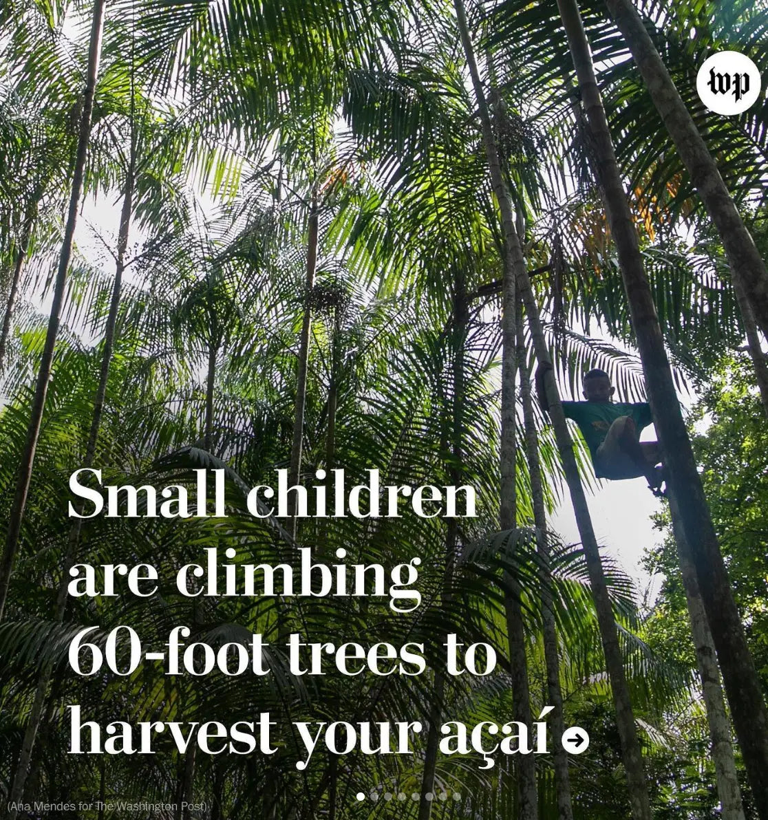 Os baixos salários e as condições precárias de trabalho são uma tradição no mundo do açaí, e não é à toa que a colheita do açaí é o trabalho mais perigoso do Brasil!